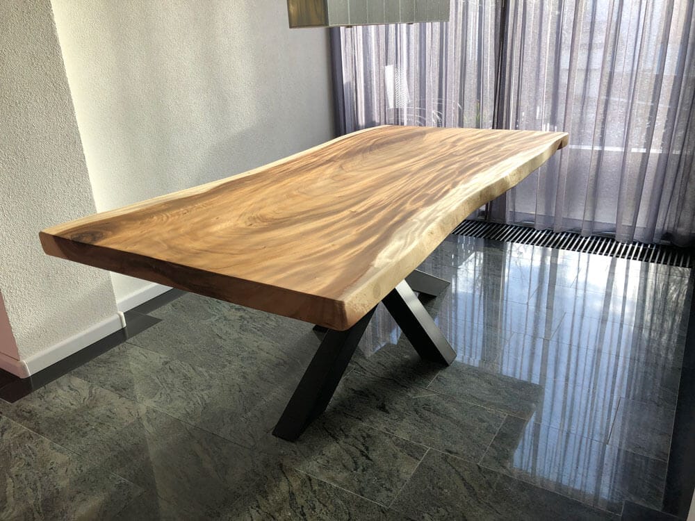 De constructie van het matrix tafelonderstel maakt het ideaal voor zware tafelbladen van eiken en Suar. Omdat het gewicht in het midden wordt verdeeld, blijft de tafel stevig staan, zelfs bij bladen van 400 cm of meer. Het robuuste ontwerp sluit perfect aan bij industriële interieurs, maar past ook in strakkere woonstijlen dankzij de minimalistische lijnen.