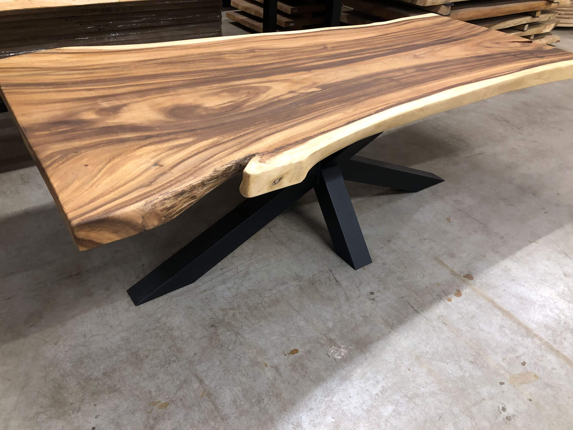 Het X-onderstel valt op door zijn kruising en krachtige vorm. Perfect voor wie zoekt naar een stevige basis met een industrieel accent.
