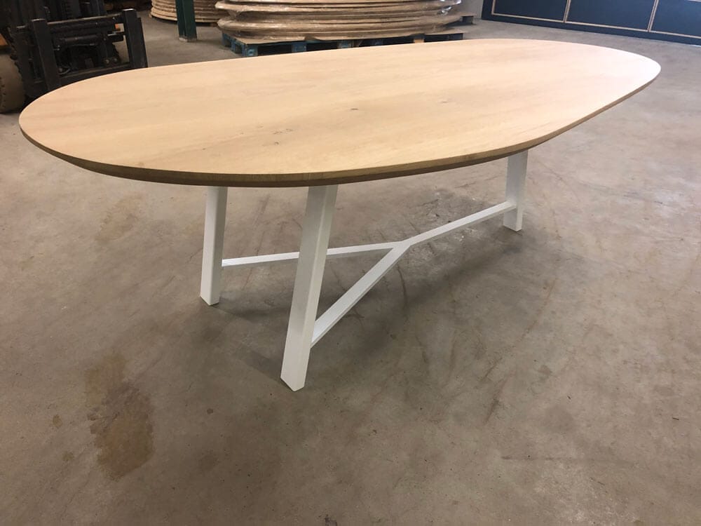 Ovaal eiken tafelblad : massief, krachtig en volledig natuurlijk.