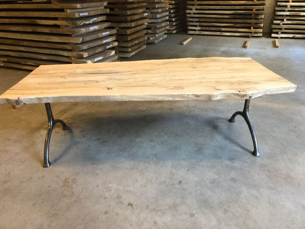 Zeker. Onze eiken boomstam tafelbladen behouden de originele rand van de boom voor een unieke uitstraling.