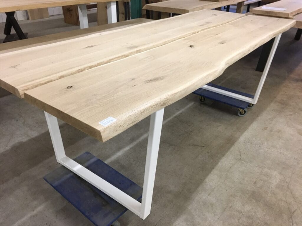 Al onze eikenhouten tafelbladen zijn gedroogd, vlak geschaafd en klaar voor gebruik of verdere afwerking. Wil je een eiken blad op maat met specifieke lengte, breedte of afwerking? Neem contact op, we denken graag mee. Onze combinatie van voorraad en vakmanschap maakt bijna alles mogelijk.