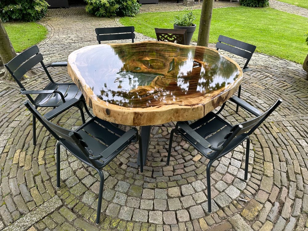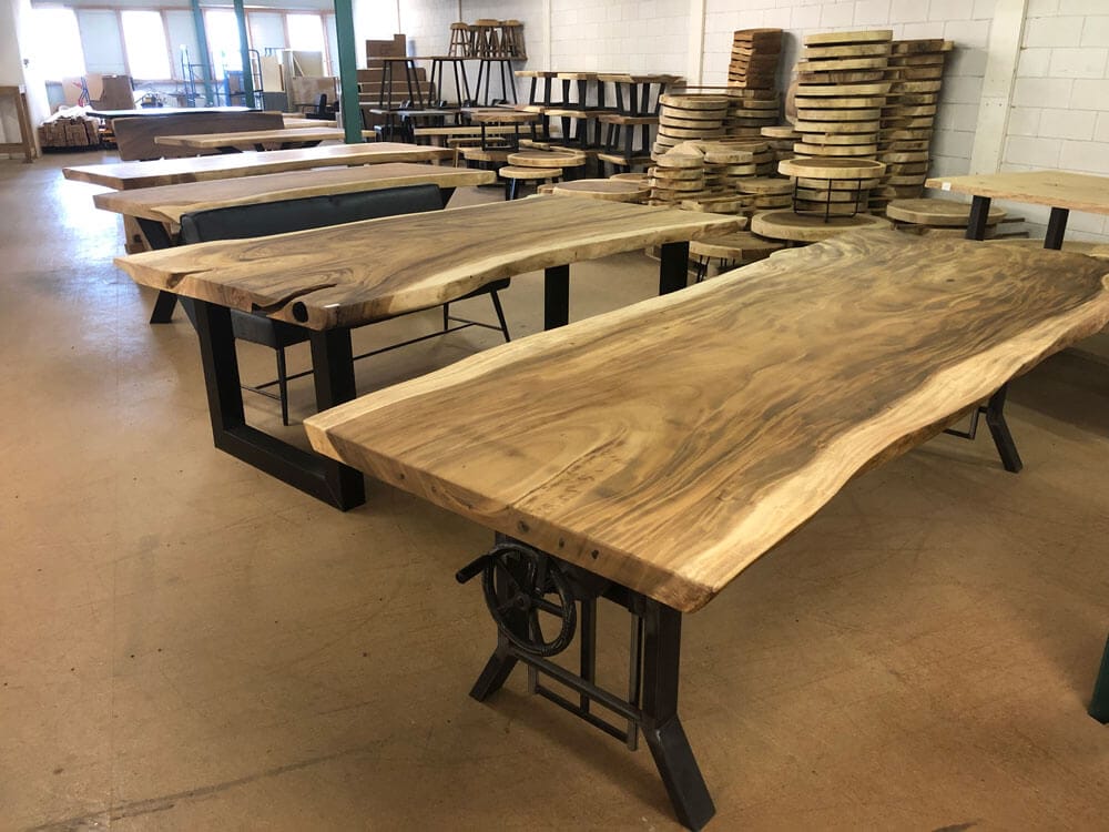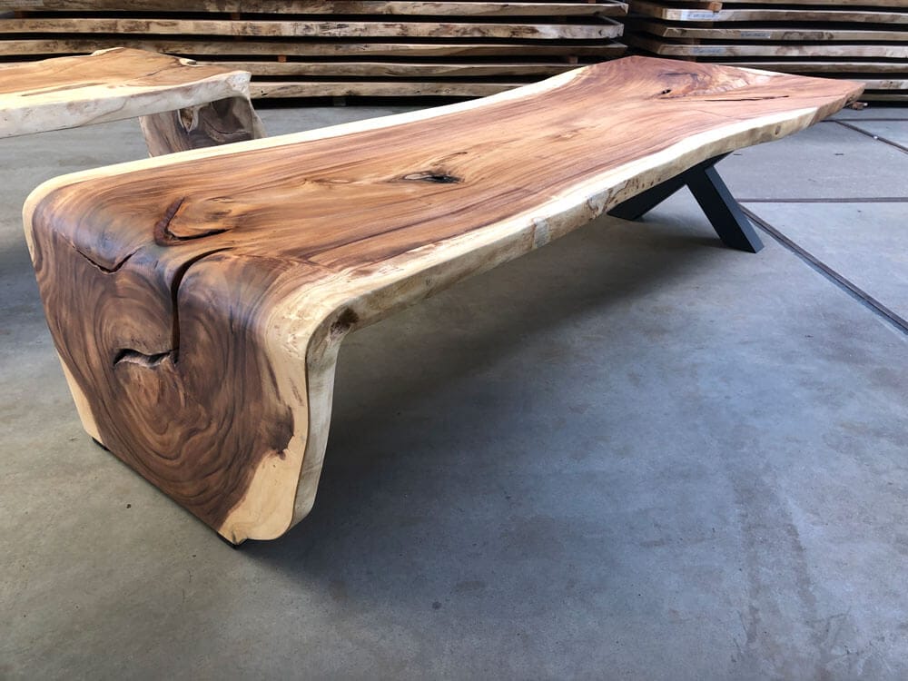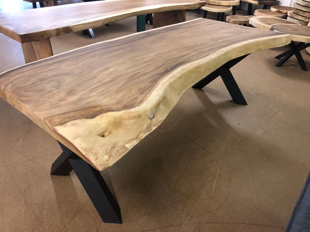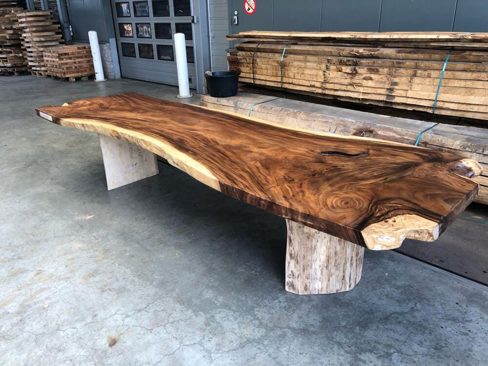Bladen uit één stuk zijn exclusief, sterk en uniek. Geen verlijmingen, maar puur vakwerk, vooral bij Suar tafels.