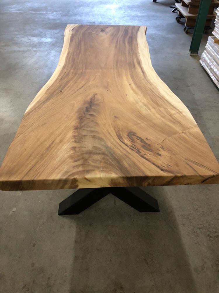 Bladen uit één stuk zijn exclusief, sterk en uniek. Geen verlijmingen, maar puur vakwerk, vooral bij Suar tafels.