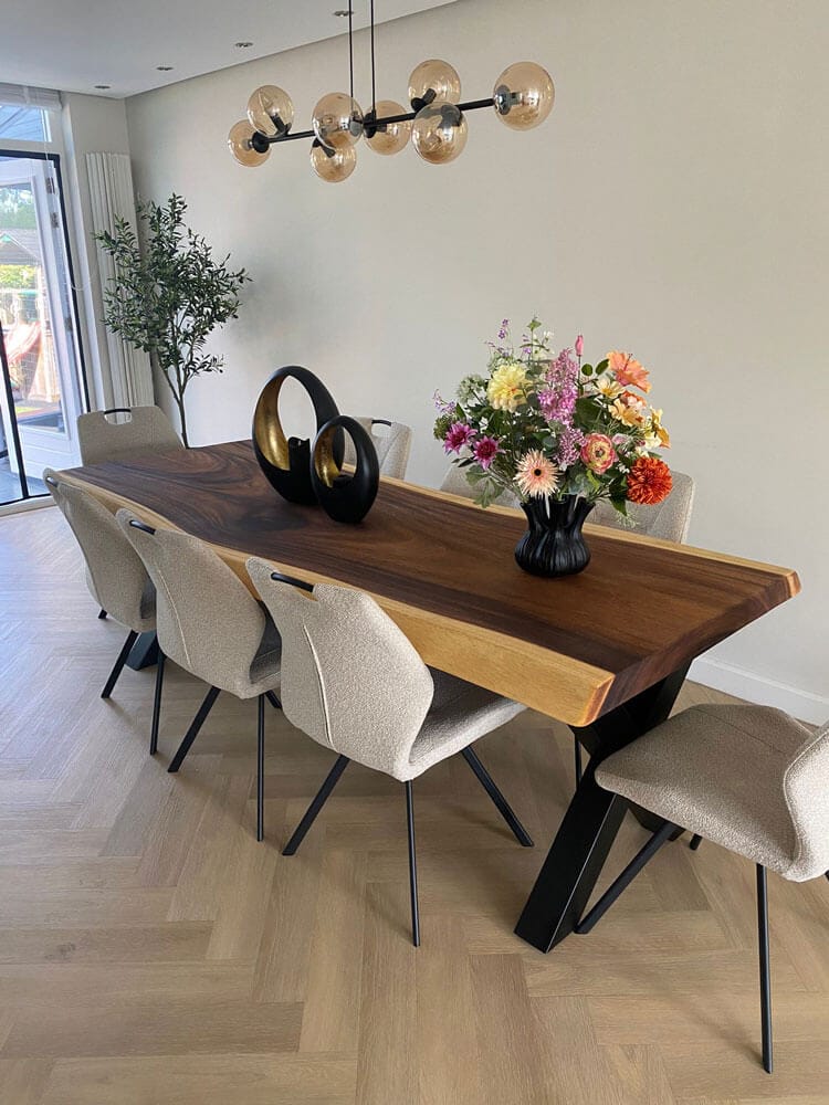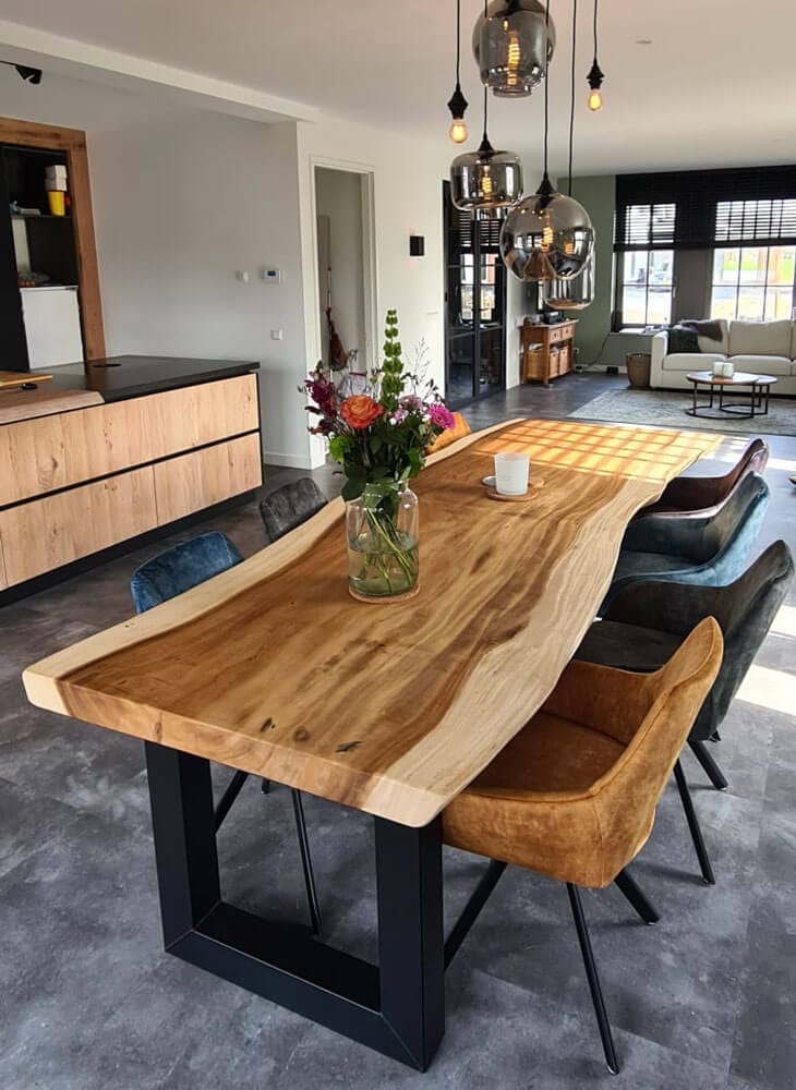 Wij leveren aan meubelwinkels, interieurbouwers en projectinrichters. Dankzij een vaste voorraad van meer dan 500 tafelbladen en een eigen werkplaats kunnen we snel leveren, ook bij grotere aantallen. Tafelbladen zijn beschikbaar met natuurlijke boomkant of recht afgewerkt, afhankelijk van jouw markt of klanttype.