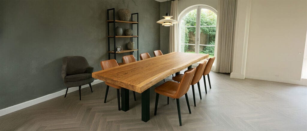 Wij leveren aan meubelwinkels, interieurbouwers en projectinrichters. Dankzij een vaste voorraad van meer dan 500 tafelbladen en een eigen werkplaats kunnen we snel leveren, ook bij grotere aantallen. Tafelbladen zijn beschikbaar met natuurlijke boomkant of recht afgewerkt, afhankelijk van jouw markt of klanttype.